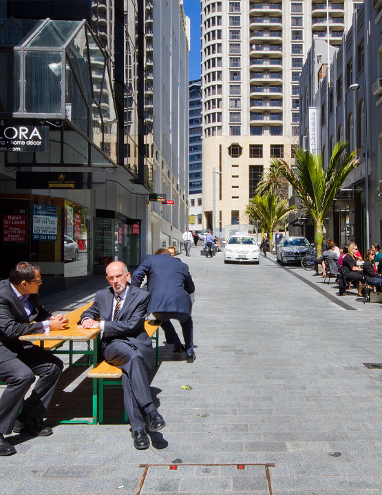 The upgrade of O’Connell Street presented a number opportunities to transform the streetscape while preserving the heritage architecture. Boffa Miskell landscape architects worked with Auckland Council Heritage officers, New Zealand Historic Places Trust and the project archaeologist to highlight particular features of the social and urban history and enhance views of the unique architecture and façades.