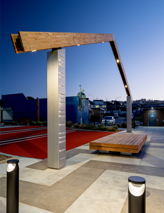 Borrowing ideas from the hall’s varied historical use, including cinematic projection and theatre; and recalling that the land on which the hall was located is important to Ngāti Toa, we worked with the council and local iwi to create a welcoming outdoor space that could accommodate aspects of the activities that the hall had once hosted.