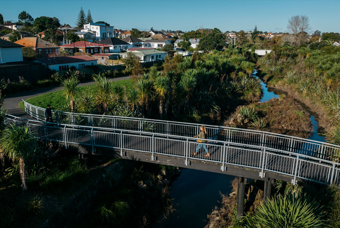 Te Auaunga is a much-awarded early exemplar of an ‘integrated blue-green’ approach to development – an environmental design strategy that is expected to be increasingly important and seen more frequently across Auckland in response to climate change.