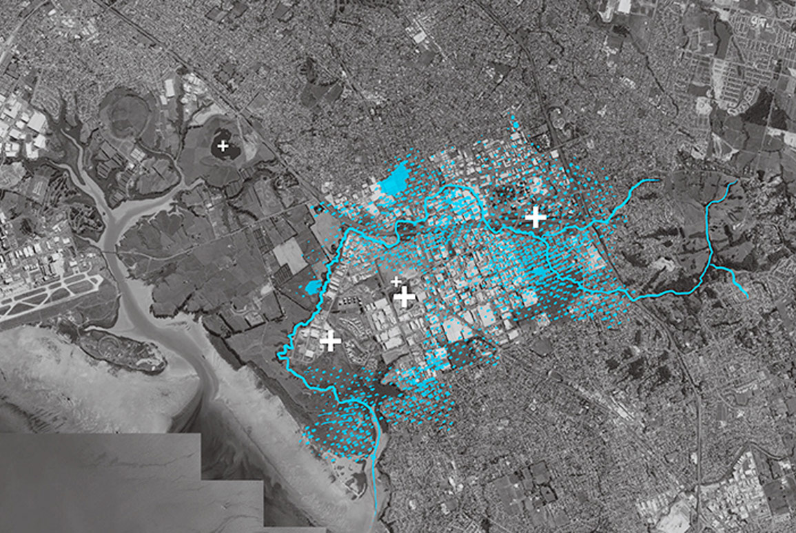 Secondly, the functional lighting for the pedestrian and cycle paths has been utilised to reference the Puhinui naming story. The Puhinui narrative ties the story to place by using naming – Puhi Nui – which refers to an event where a hidden waka was discovered as a result of its protruding puhi. These are also known as whatu (eyes) ariki (spiritual guide) or the guiding eyes that can be seen on the front of a waka taua.