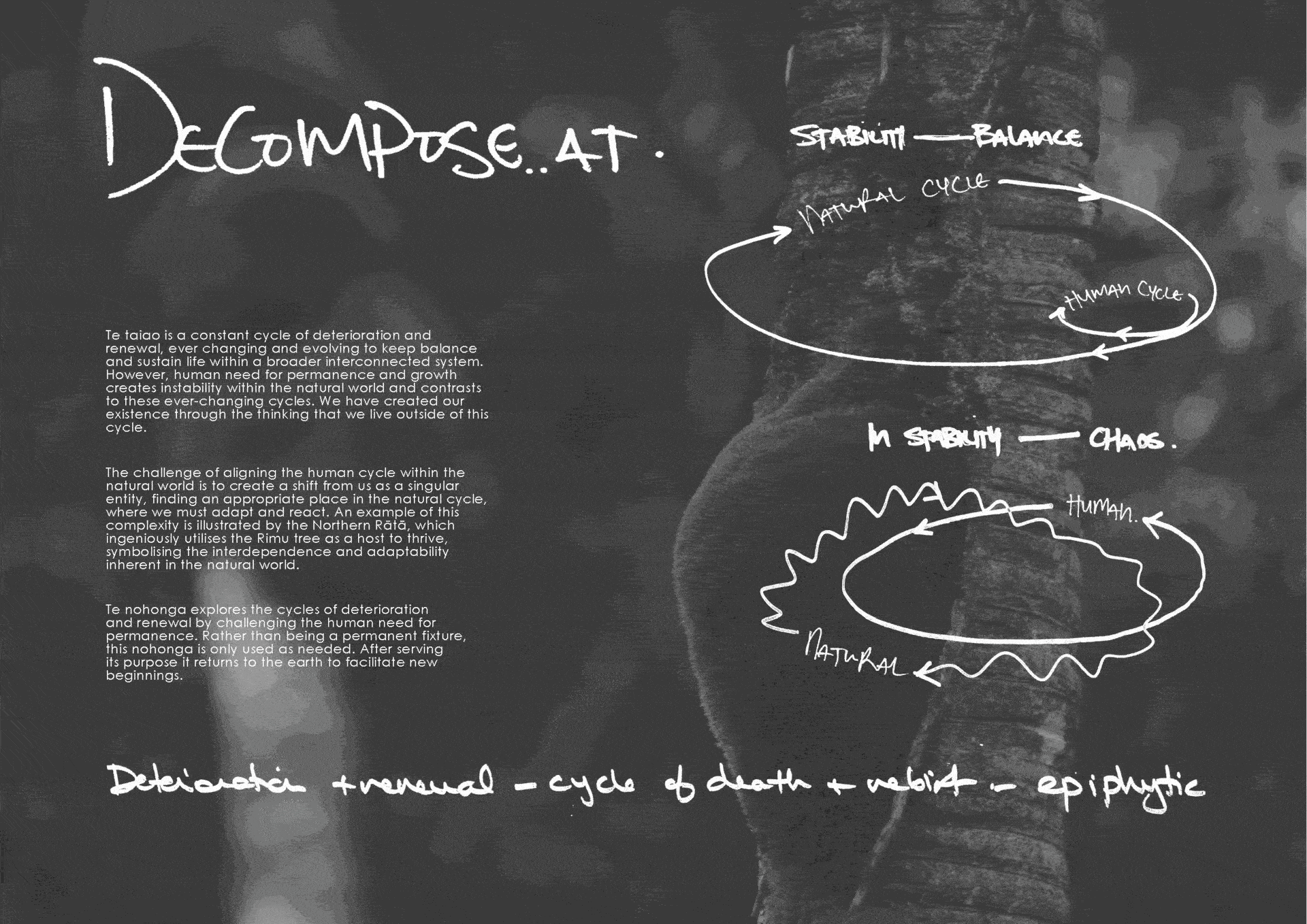 Haumanu challenged entrants to think about how we find balance with nature in the form of a nohonga. How might a nohonga be used to restore and / or inform te taiao, whenua and tangata?