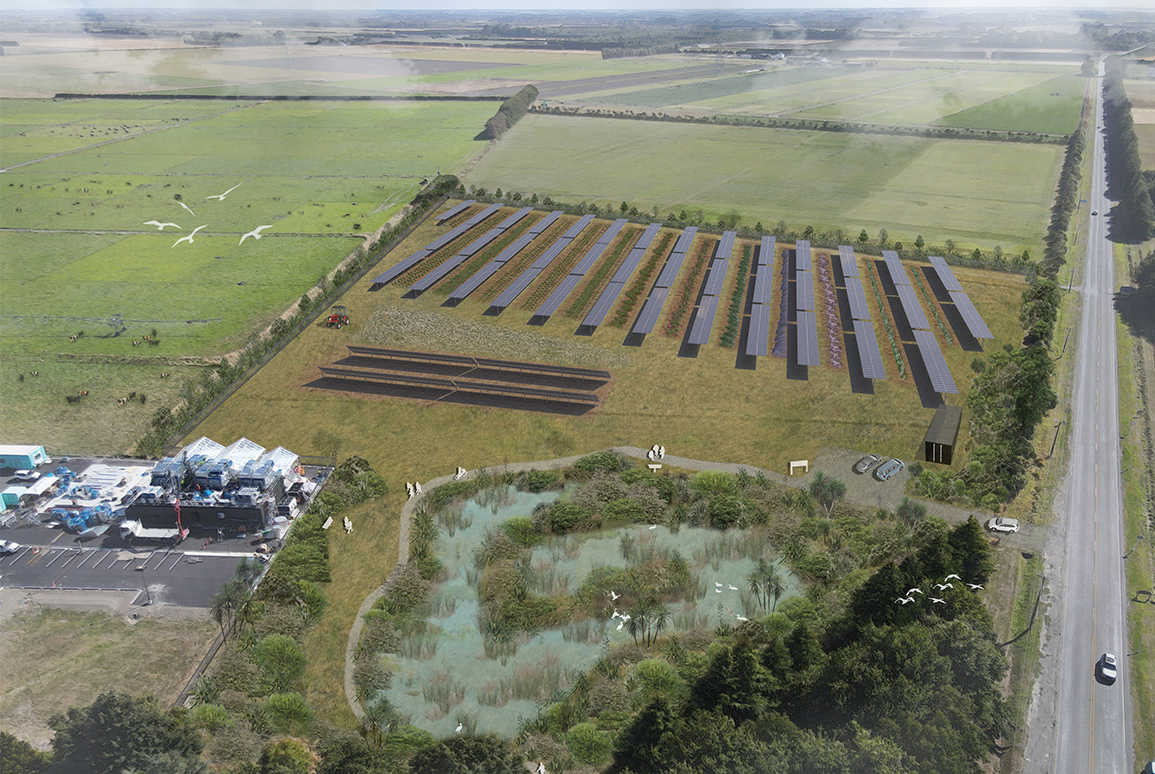 Boffa Miskell provided landscape design expertise relating to the planting on-site, and worked with Lincoln University to curate a palette of appropriate species to be planted around the proposed solar panels and within the wetland area.