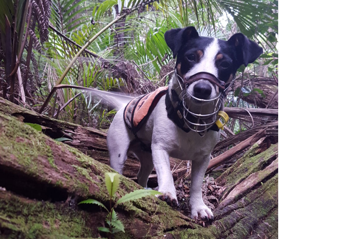 With maps in hand and dressed in hi-vis vests, teams of two set off into the bush, accompanied by Millie, the DOC rat detector dog.