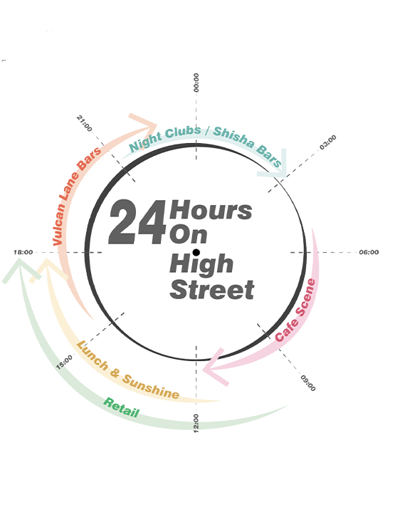 The concept also acknowledged High Street’s role as a vibrant, 24-hour urban environment, with specific design measures aimed at improving the nighttime experience, such as enhanced lighting, active frontages, and high-quality materials. These findings have directly informed the streetscape concept, providing a robust, evidence-based foundation for design decisions.
