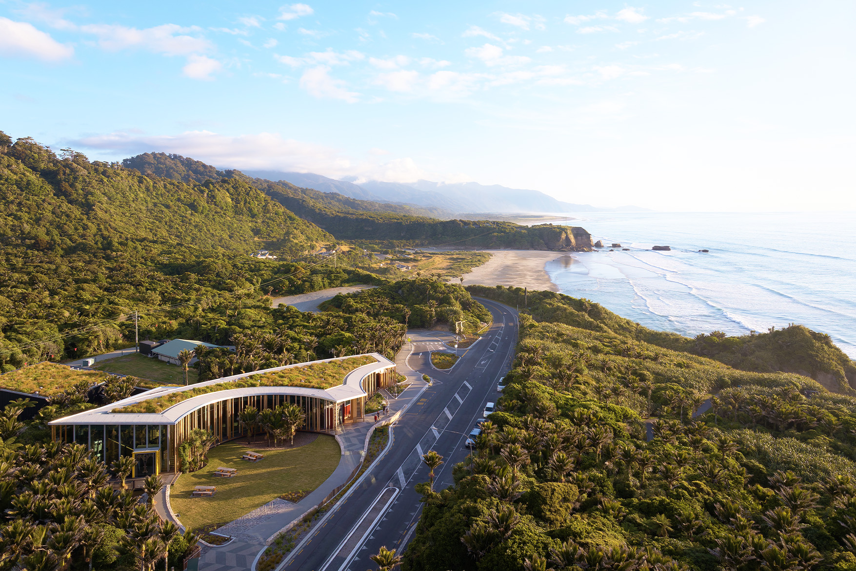 The Punangairi Visitor Experience Centre in Punakaiki | Dolomite Point is the result of a decade-long process and a collaborative vision to revitalise one of Aotearoa New Zealand's most iconic tourism destinations while strengthening the cultural presence and economic well-being of Ngāti Waewae.